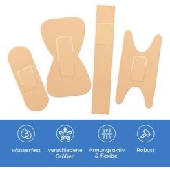 Flexeo Pflaster Mix Pflasterset, 50 Strips, Wasserfest, Elastisch, 4 Größen