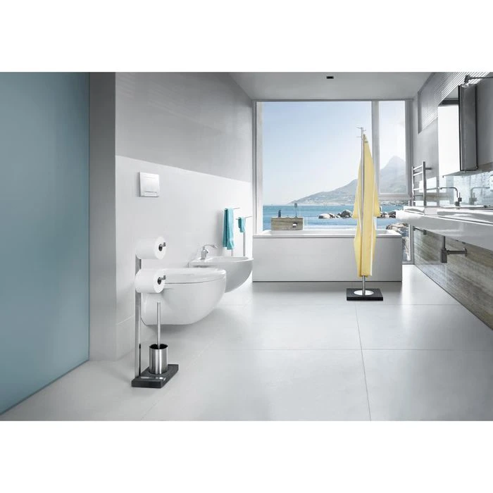 sonstiges: dunkler Kunststein mit mattem Edelstahl, mit 2 Toilettenpapierhaltern