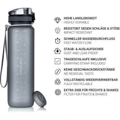 720DGREE Trinkflasche UberBottle Stone Gray, 1 L, Kunststoff, Grau