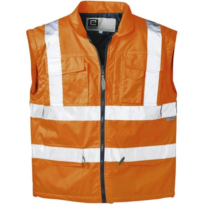 sonstiges: Nähte geschweißt, mit Reflexstreifen, Jacke und Innenweste mit verdecktem 2-Wege Front-Reißverschluss, Ärmel in ergonomischer Schnittführung für maximale Bewegungsfreiheit und Komfort, Weste mit 2 Brusttaschenkombinationen (Handy, Stifte, Unterlagen etc.) und 2 Hüfttaschen mit Klett- u. Reißverschluss