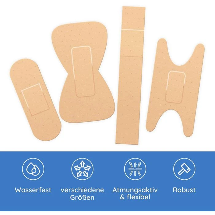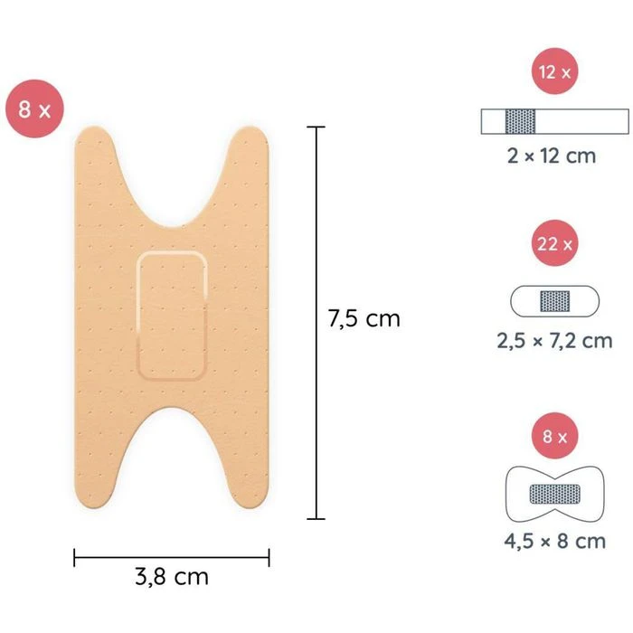 • 8 x Fingergelenkverband (7,5 x 3,8 cm), 22 x Strip (7,2 x 2,5 cm)