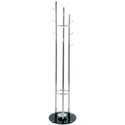 sonstiges: 9 Kleiderhaken, Schirmhalter mit Tropfschale, Standfuß aus 10 mm starkem Sicherheitsglas in schwarz