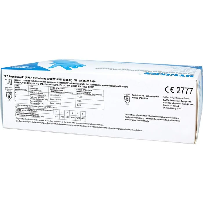 Zertifikat: DIN EN 455, DIN EN 374, DIN EN 420