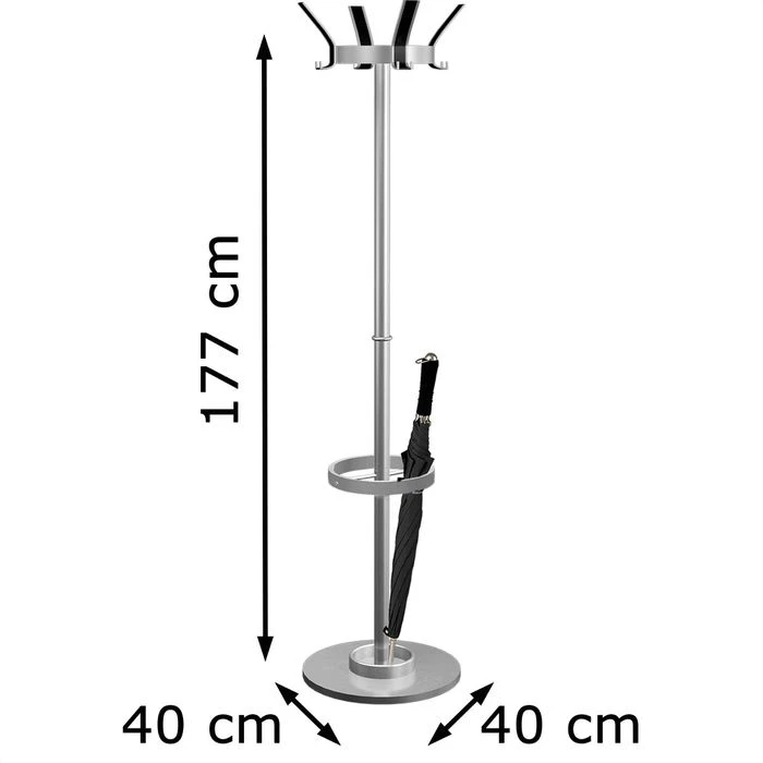 • Schirmhalter und im Standfuß integrierte Tropfmulde