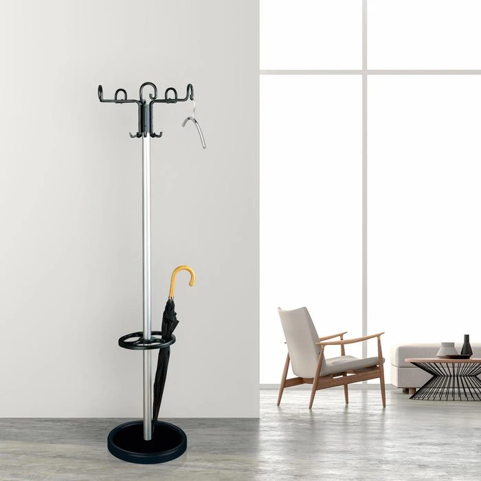 sonstiges: drehbare 5-armige Hakenkrone mit 5 Hut- und 10 Mantelhaken, Schirmhalter mit Tropfmulde, standsicher durch schweren Standfuß mit Betonfüllung