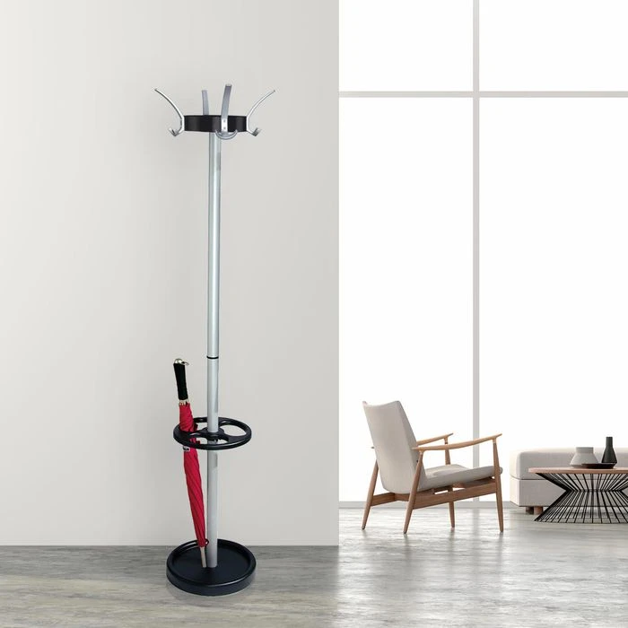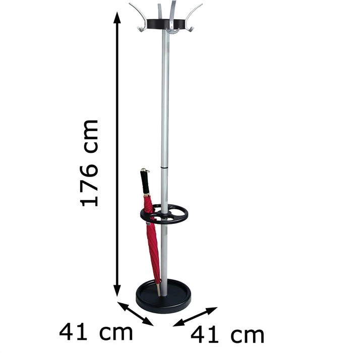 sonstiges: drehbare Hakenkrone mit 4 Hut- und 12 Mantelhaken, Schirmhalter mit Tropfmulde, standsicher durch schweren Fuß