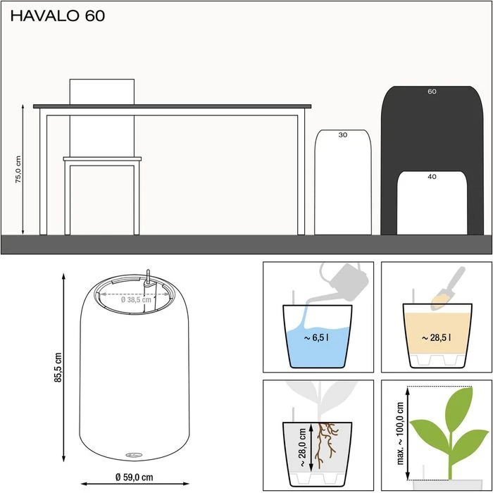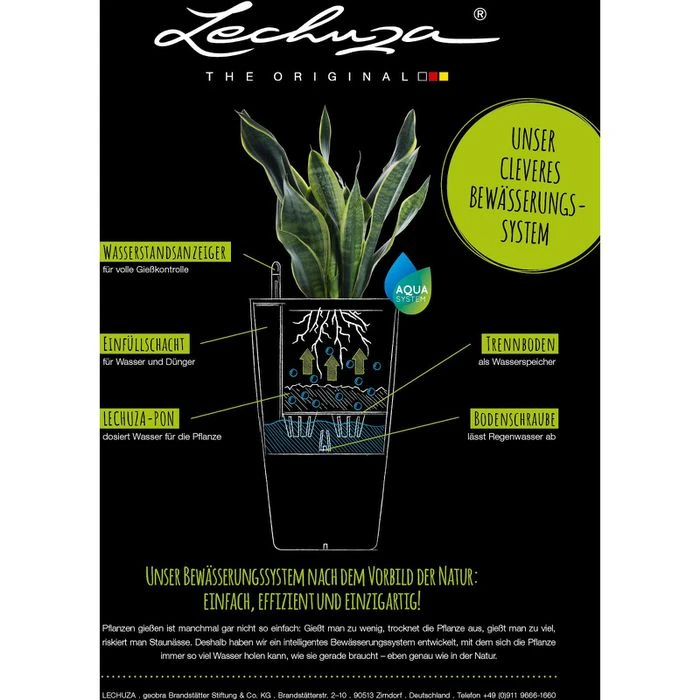 Lieferung: inkl. Pflanzeinsatz (38,5 x 38,5 x 28 cm), Wasserstandsanzeiger, Trennboden, Lechuza Pon