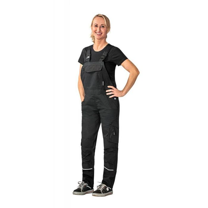 sonstiges: sehr strapazierfähig, verdeckter Reißverschluss im Hosenschlitz, hochgezogenes Rückenteil mit Trägerkreuz, Elastischer Einsatz im Schritt, Reflexapplikationen am Bein