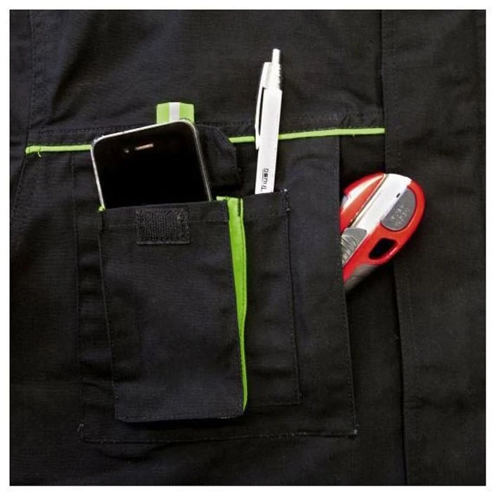 • 2 Brusttaschen mit Reißverschluss – rechts mit aufgesetzter Handytasche