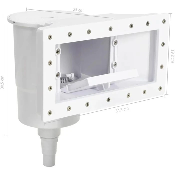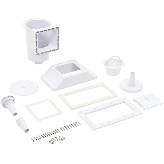 Lieferung: inkl. Breitmaul, Adapter, Aufspannscheibe, Skimmer-Wehr, Skimmer-Deckel, Bodenplatte, Dichtung, Einlaufdüse, Korb, Schlauchanschluss