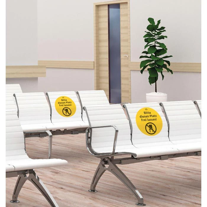 sonstiges: Aufdruck “Bitte diesen Platz frei lassen!”, gelber Untergrund, wiederablösbar, für Innen- und Außenanwendung geeignet